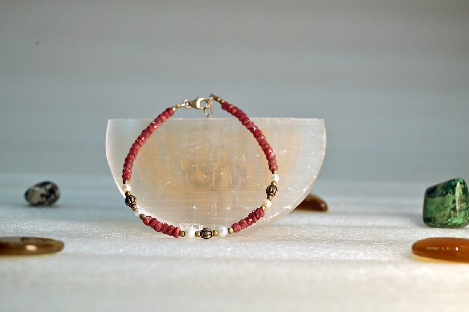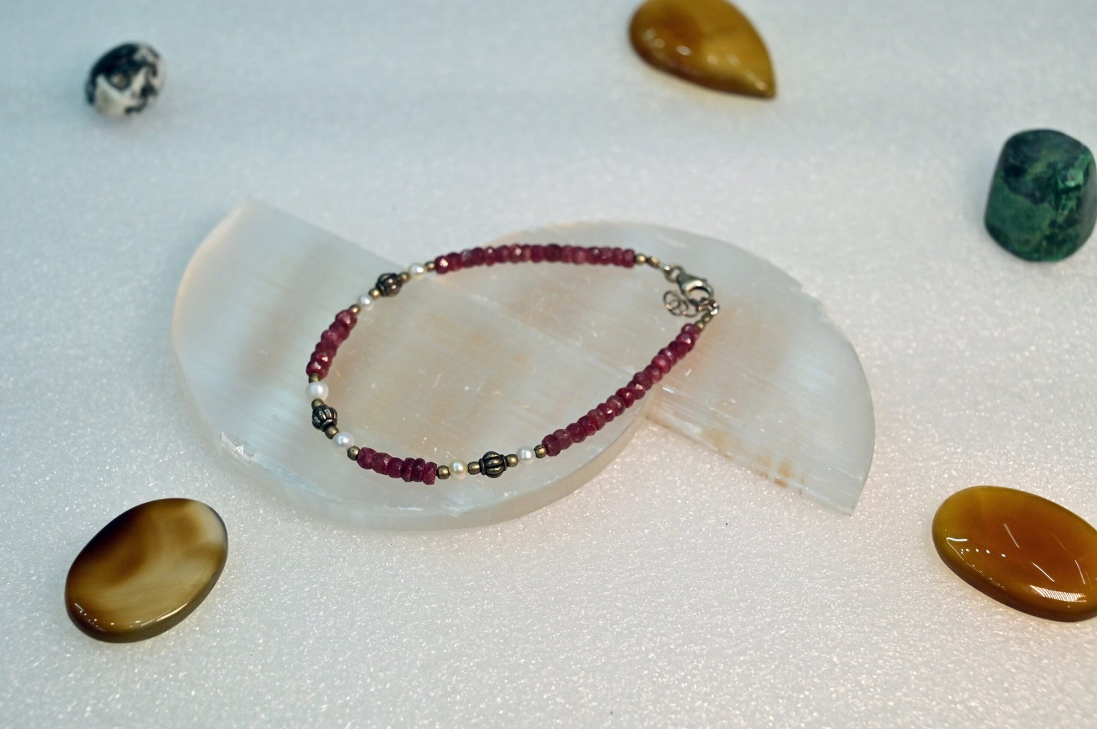 This Amazonite, Moonstone & Sunstone Bracelet offers a unique blend of calmness, intuition, and positivity. Amazonite soothes emotions, Moonstone enhances intuition and feminine energy, while Sunstone boosts confidence and joy. Crafted with natural gemstones, this bracelet is perfect for emotional balance, stress relief, and spiritual growth. Ideal for daily wear, it helps you stay positive, confident, and aligned.