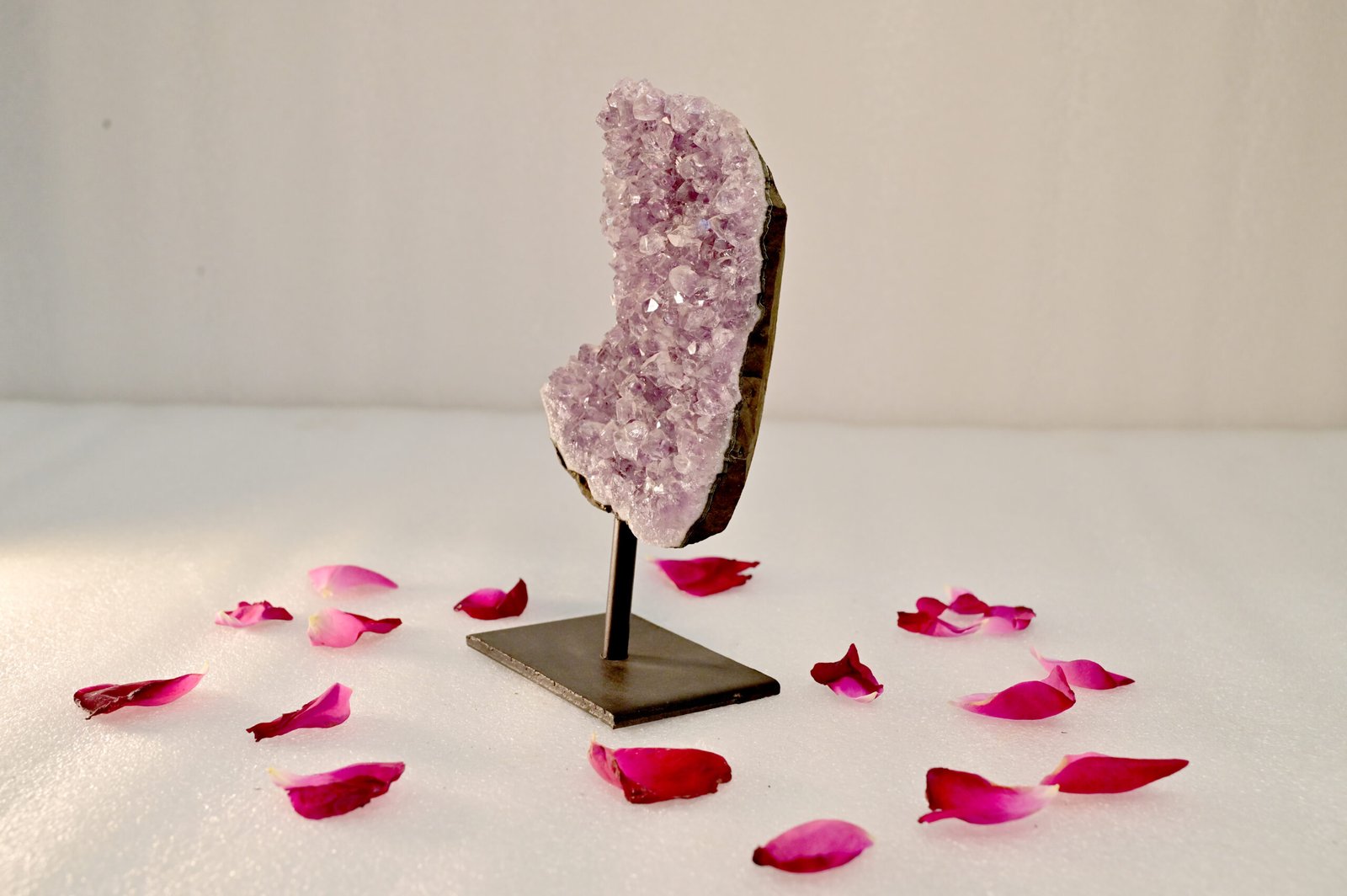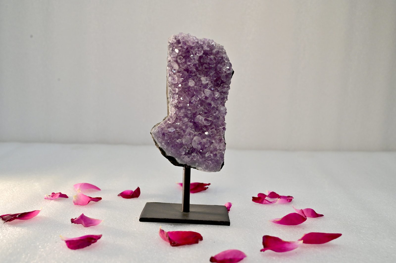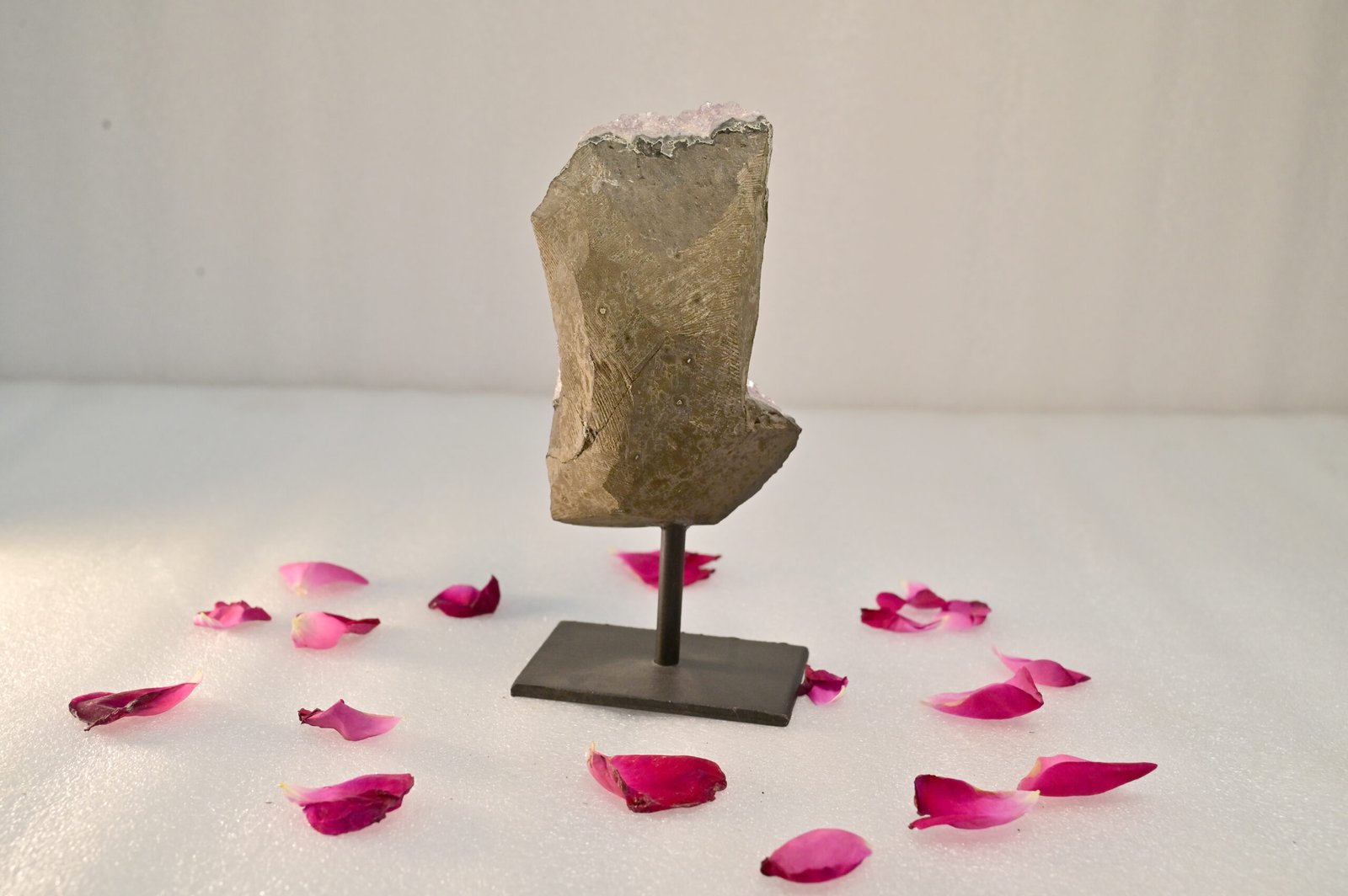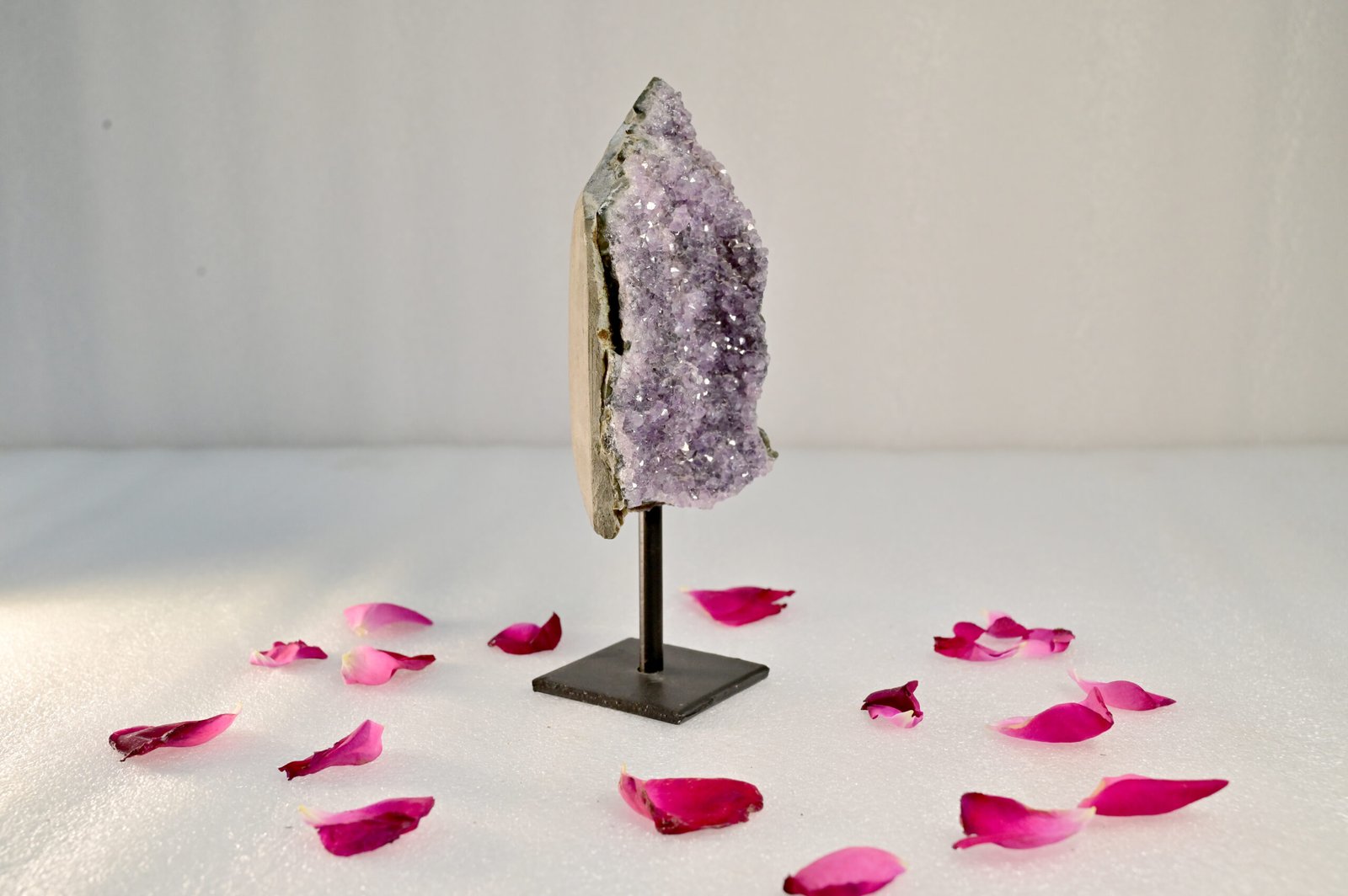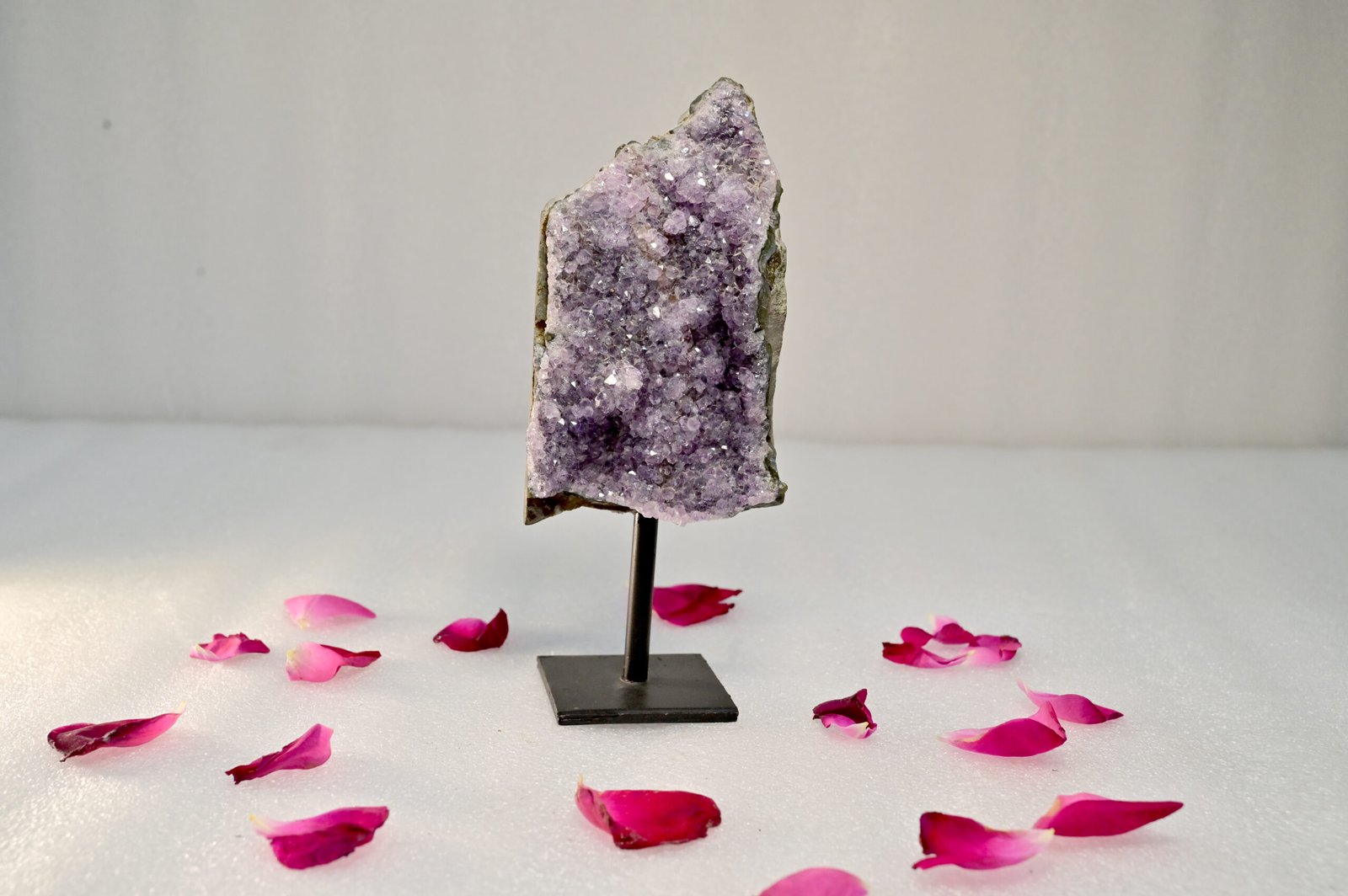 Featuring a stunning natural crystal formation, the Amethyst Geode adds an elegant touch of nature to any setting. Whether placed in a home, office, or meditation area, it effortlessly transforms your surroundings into a peaceful haven while blending seamlessly with your décor.