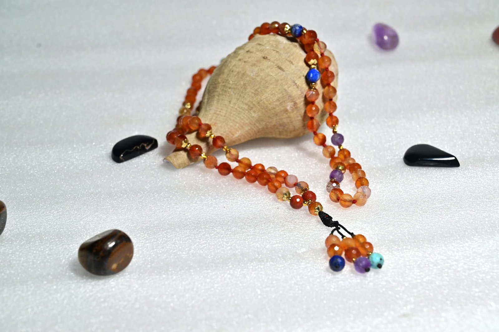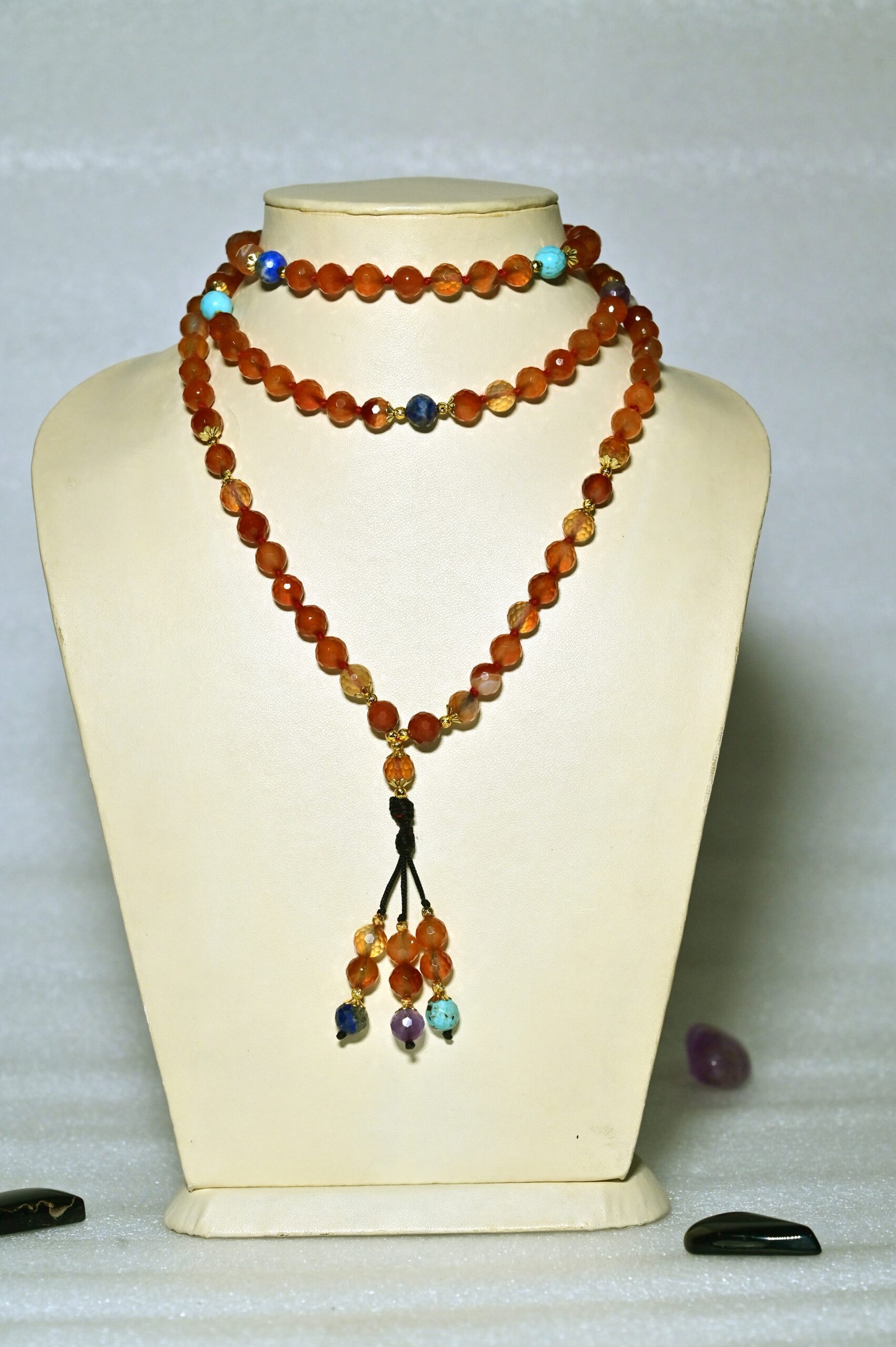 Weighing a balanced 70.34 grams, this Carnelian Cutting Mala is designed for comfort during extended wear. Enjoy a grounded and harmonious experience, whether using it to focus during meditation sessions or to energize your daily routine.
