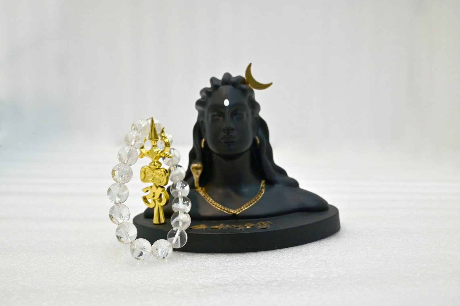 Energy-amplifying Clear Quartz bracelet with sacred OM carving.