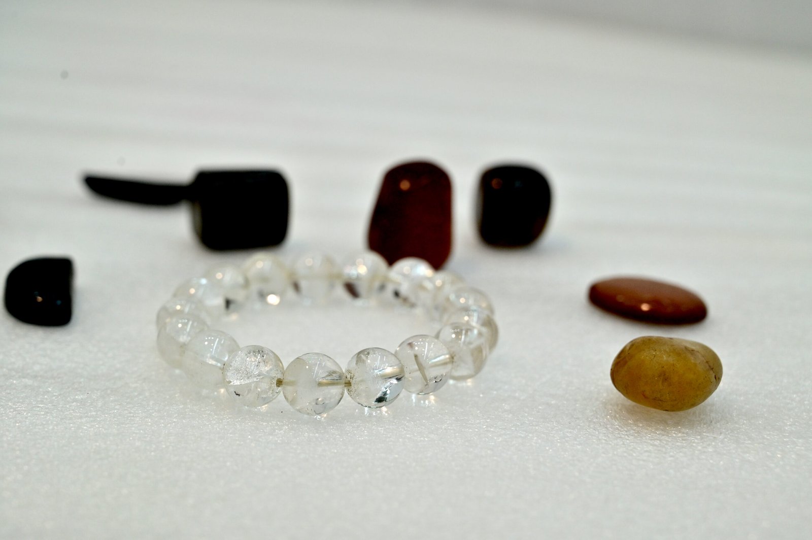 Be the first to review “Clear Quartz OM Carved Bracelet”