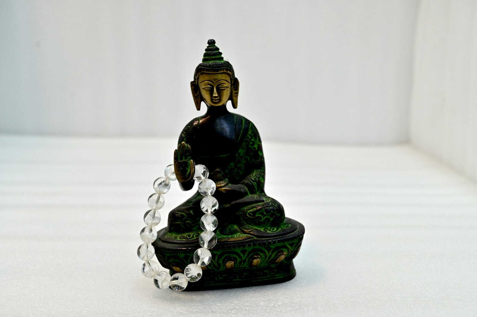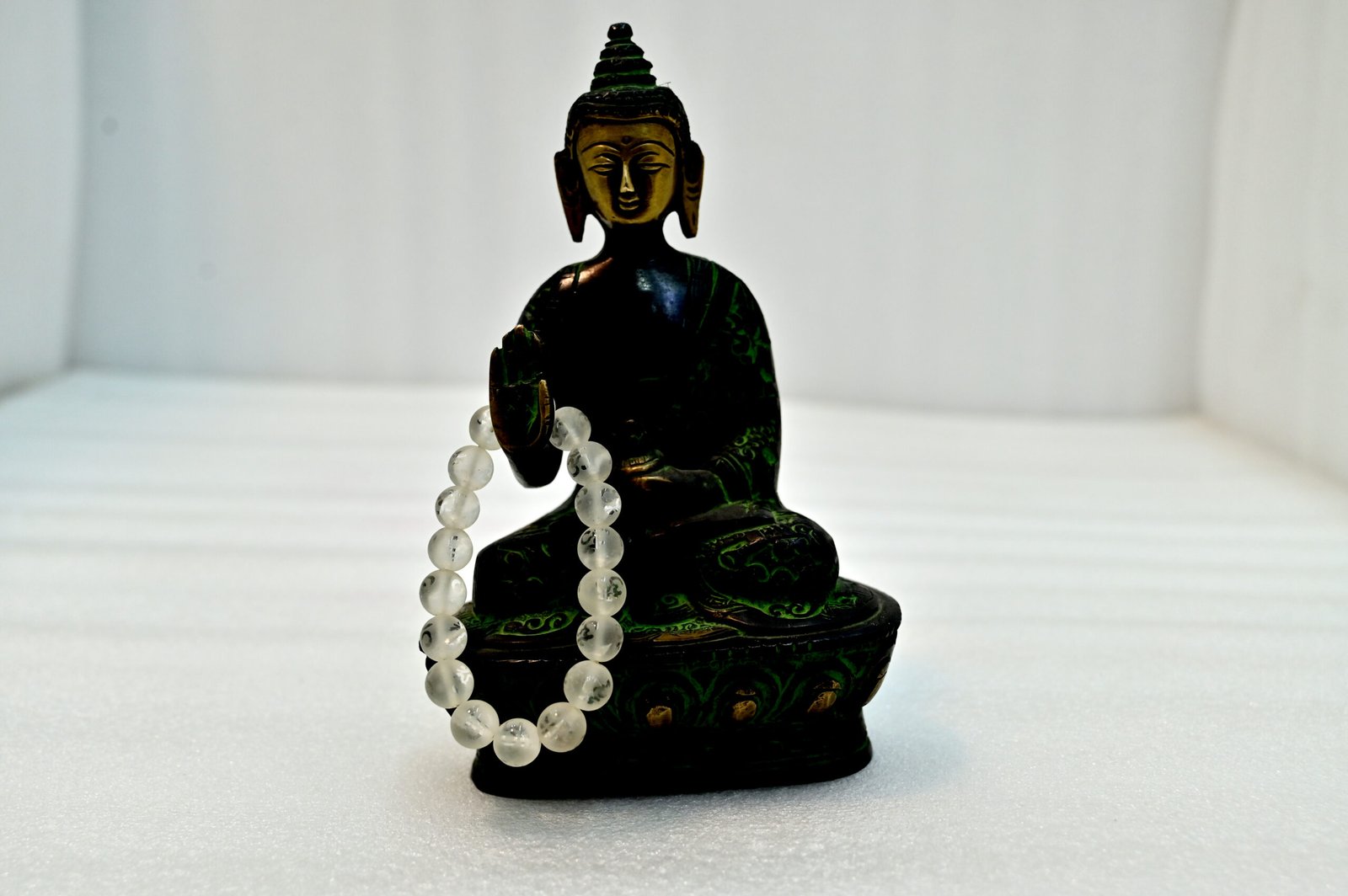 Discover the transformative power of the Energy-Amplifying Clear Quartz Bracelet with sacred OM carving. Each bead is thoughtfully crafted from natural Clear Quartz, designed to amplify energy and support your journey of self-growth and clarity.