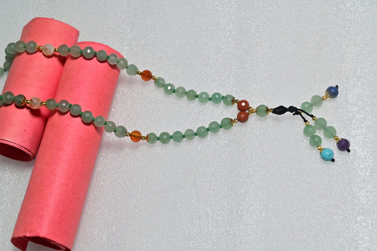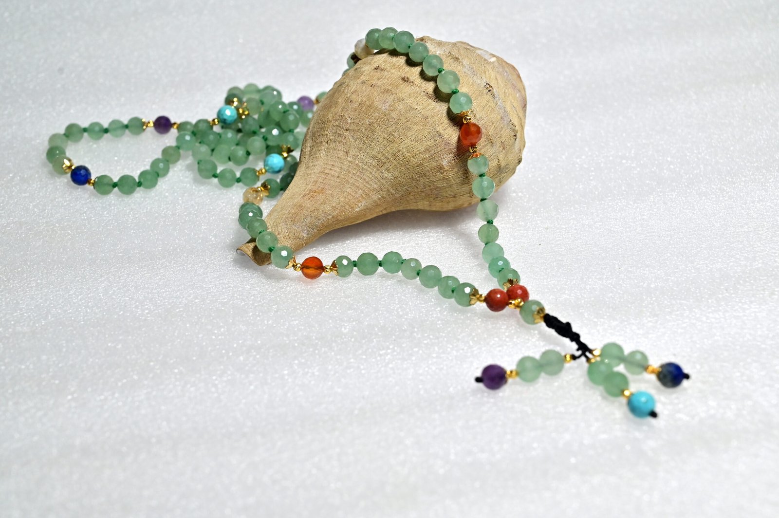 The cutting finish of the aventurine stones creates a dazzling shine that makes the mala not only a spiritual tool but also a fashionable accessory. Lightweight at just 73.02 grams, it ensures comfort during meditation, spiritual practices, or daily wear.