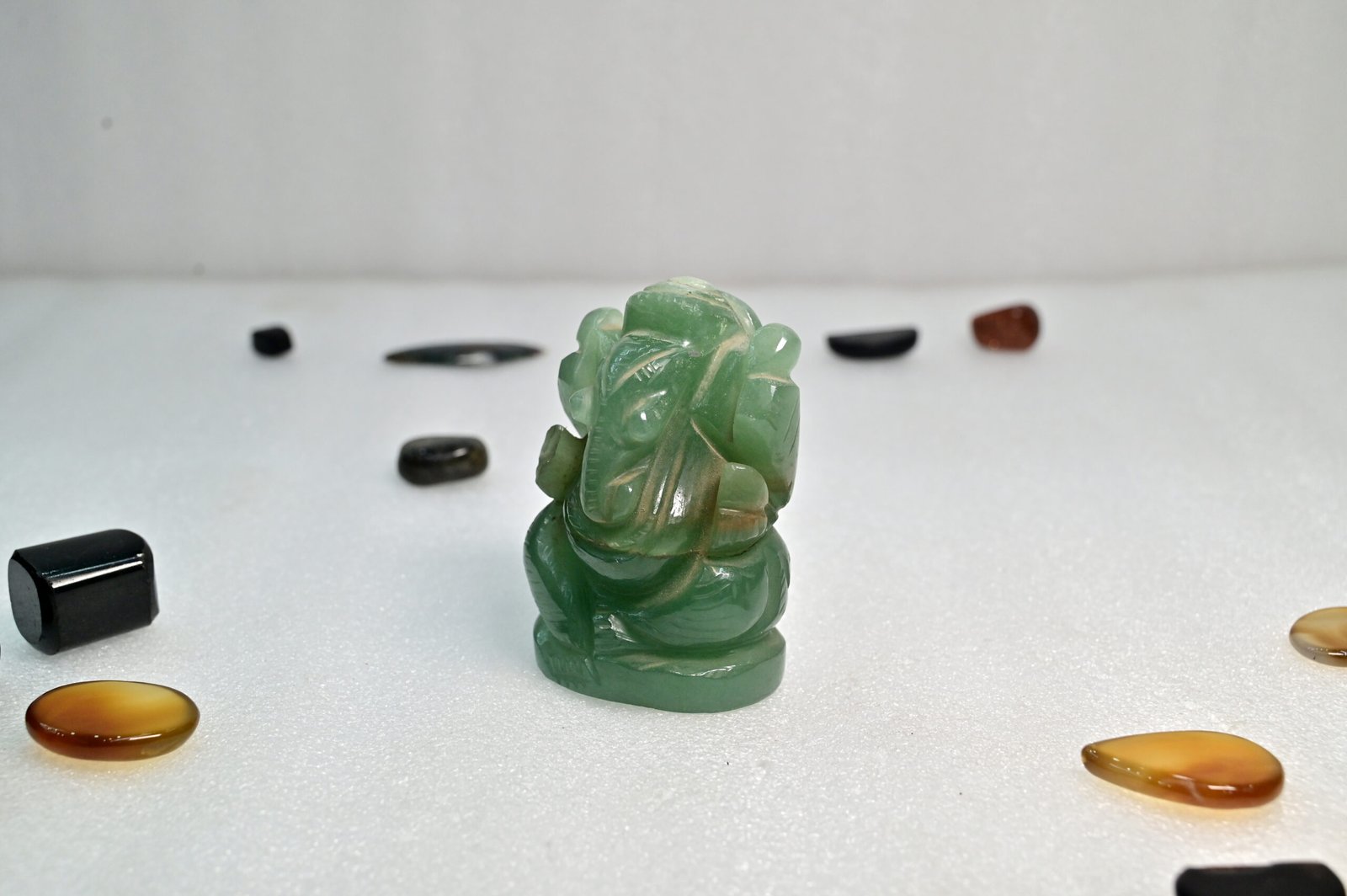 Natural Green Aventurine Ganesha Statue symbolizing luck, growth, and success.