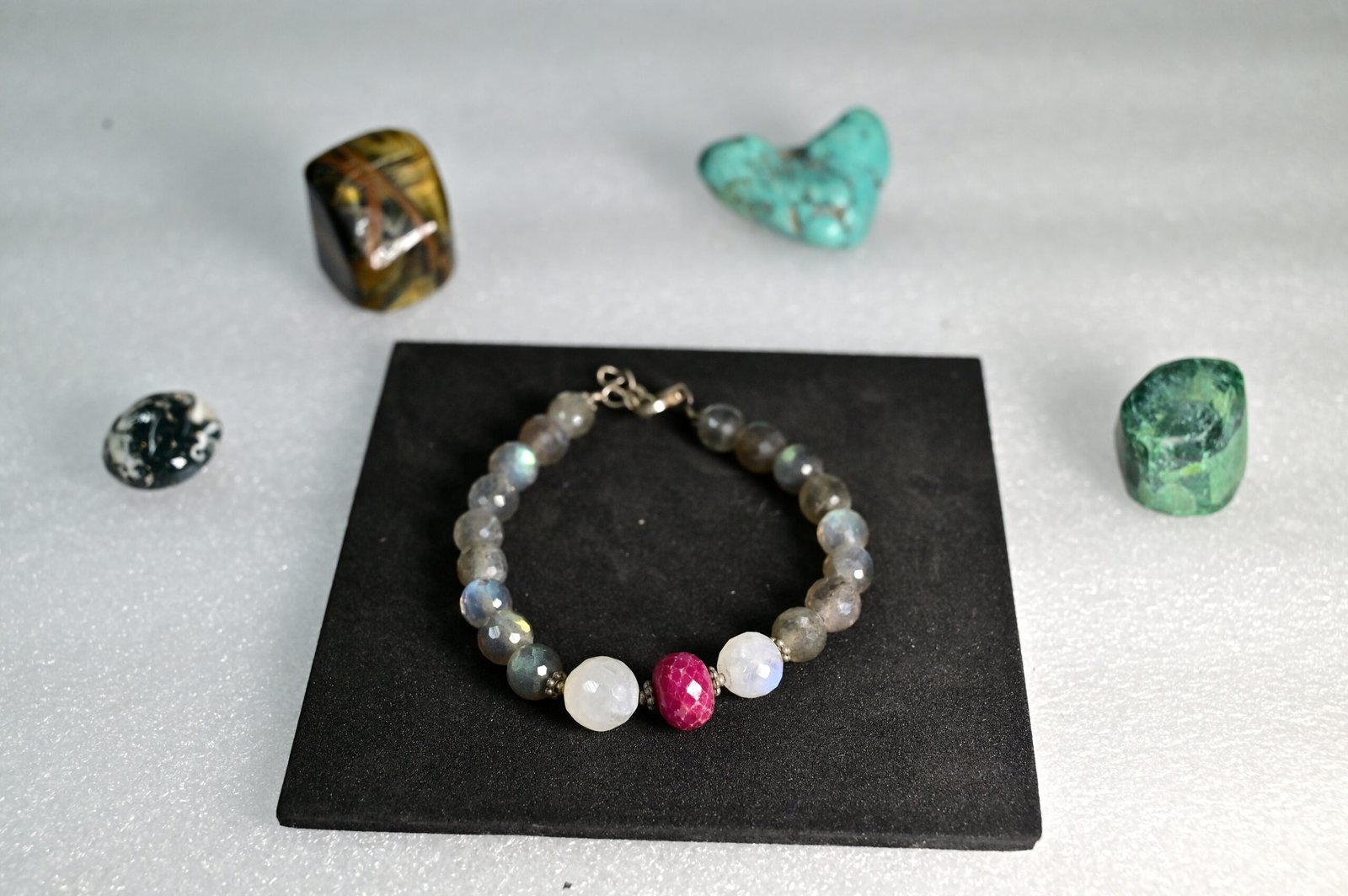 Be the first to review “Labradorite, Moonstone with Ruby Cutting Bracelet”