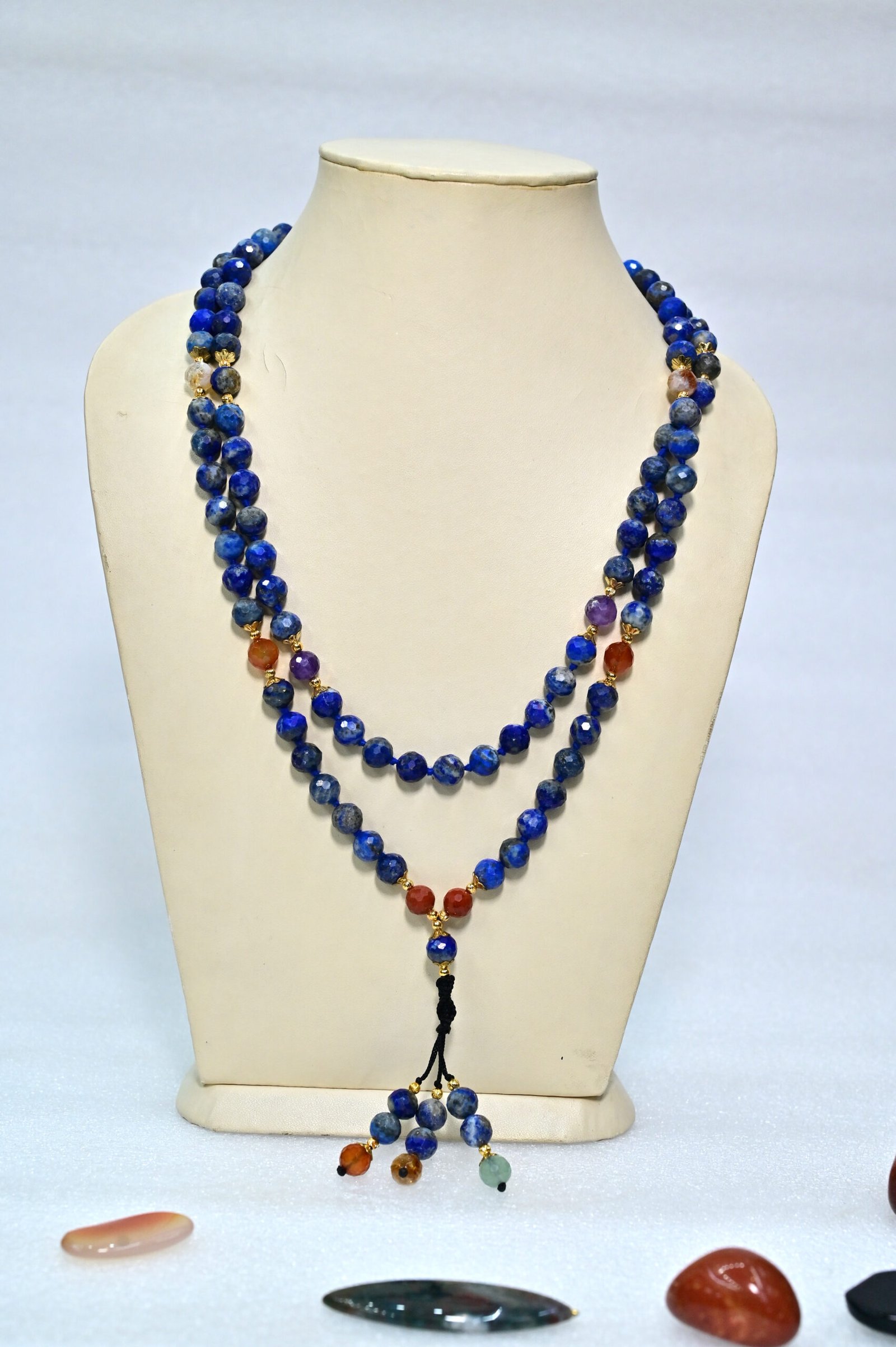 Our Premium Lapis Lazuli Cutting Mala is not just an accessory—it’s a journey toward wisdom, confidence, and self-expression. Known for its captivating deep blue hue, lapis lazuli has been cherished throughout history for its connection to truth and inner clarity. This mala brings the age-old magic of this natural stone right into your hands.