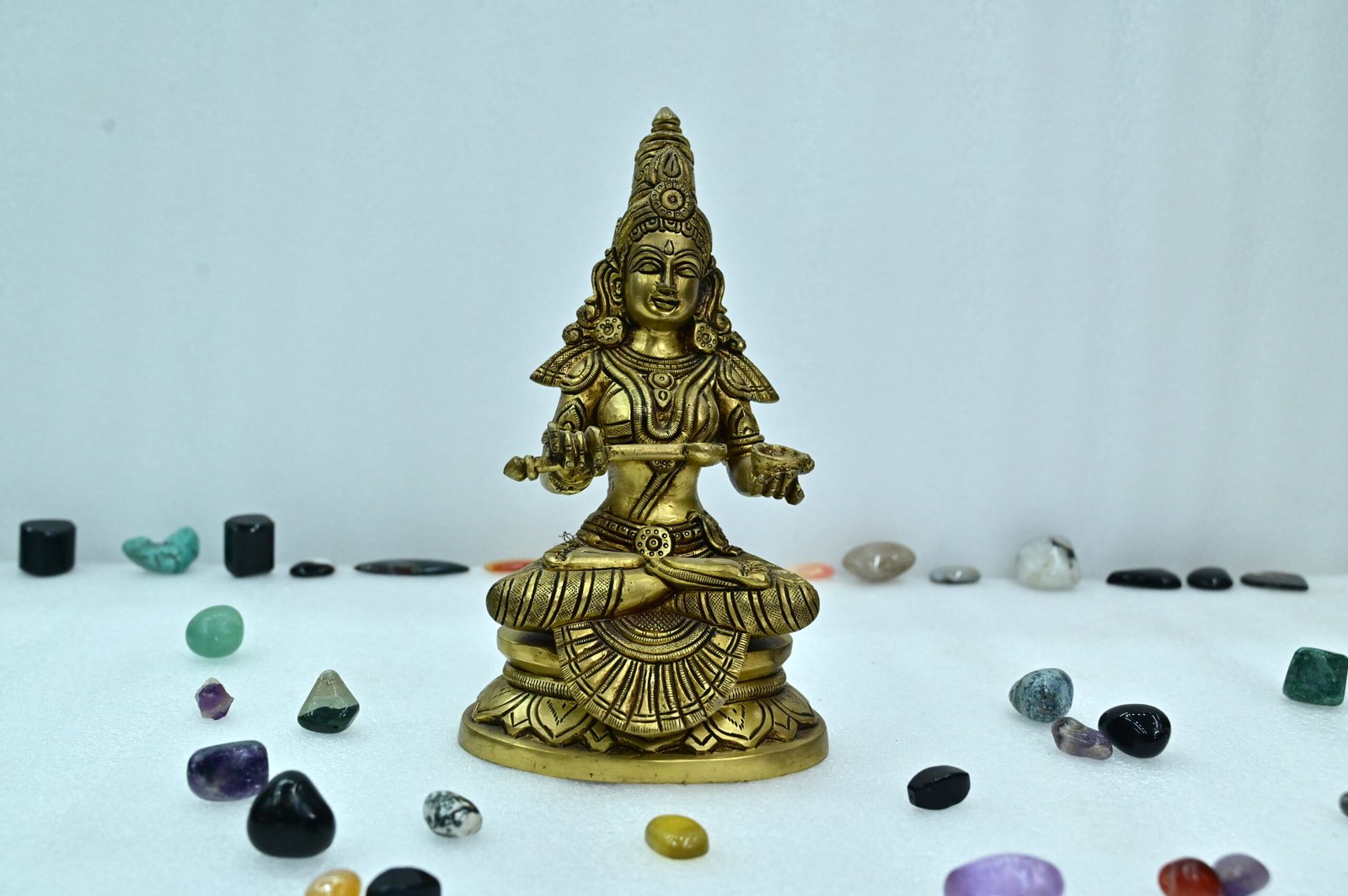 Revered as the goddess who nourishes, Mata Annapurna symbolizes the infinite abundance of food and resources. Placing this sacred statue in your home or workplace invites positivity, gratitude, and spiritual nourishment into your life.
