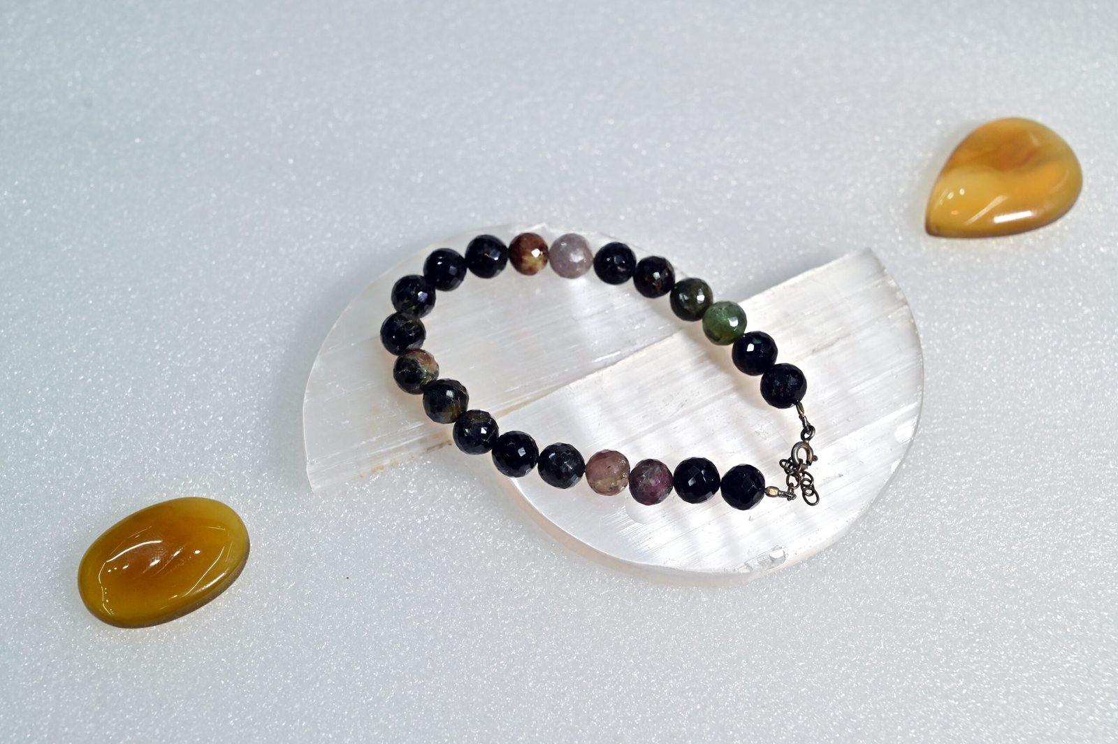 Unveiling the Multi Tourmaline Cutting Bracelet with Silver Lock—a harmonious blend of aesthetics and purpose. Handcrafted with natural faceted Multi Tourmaline stones, this accessory promotes complete chakra alignment and emotional wellbeing. It’s more than just a bracelet; it’s a gateway to positivity and balance.