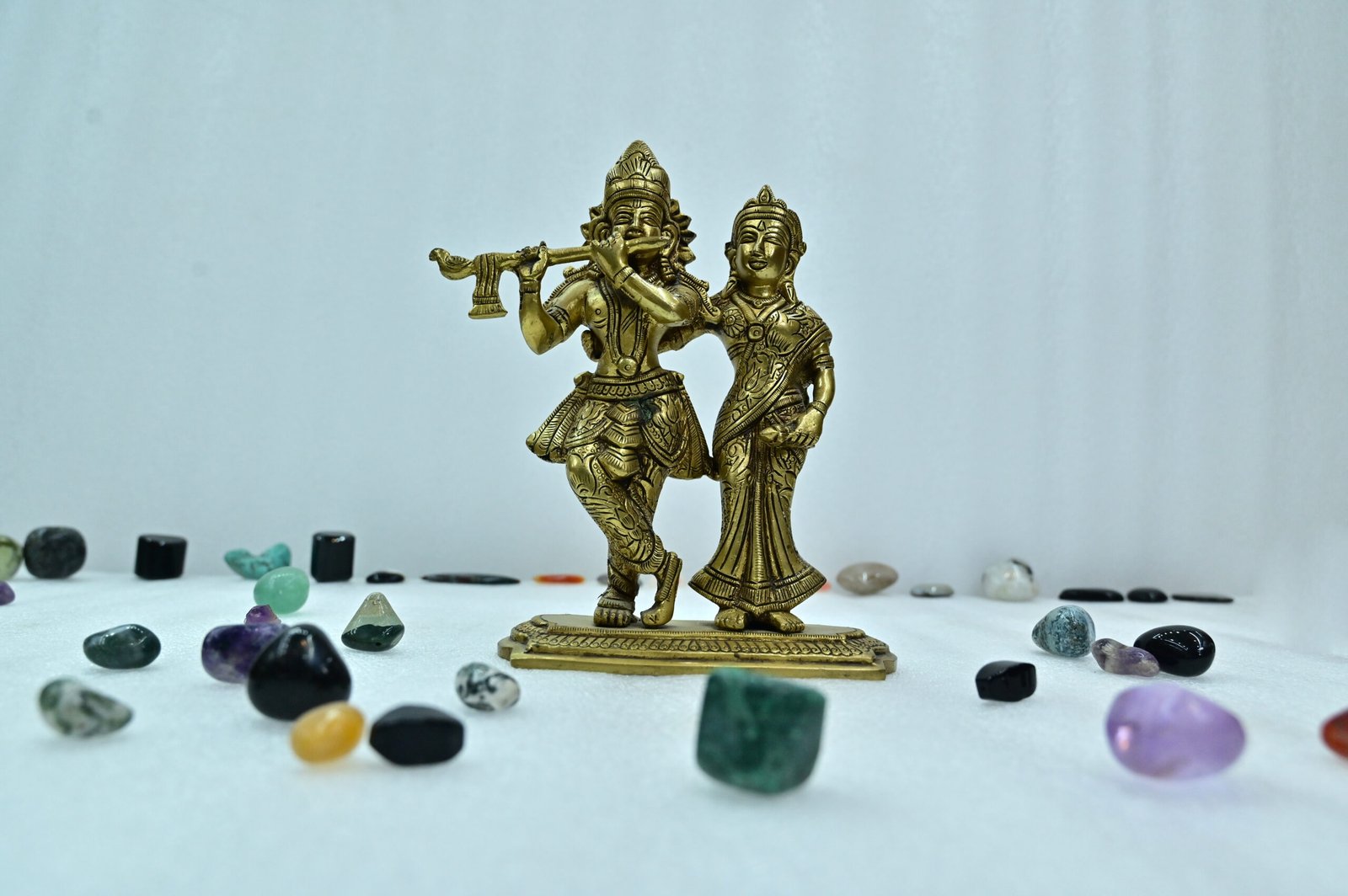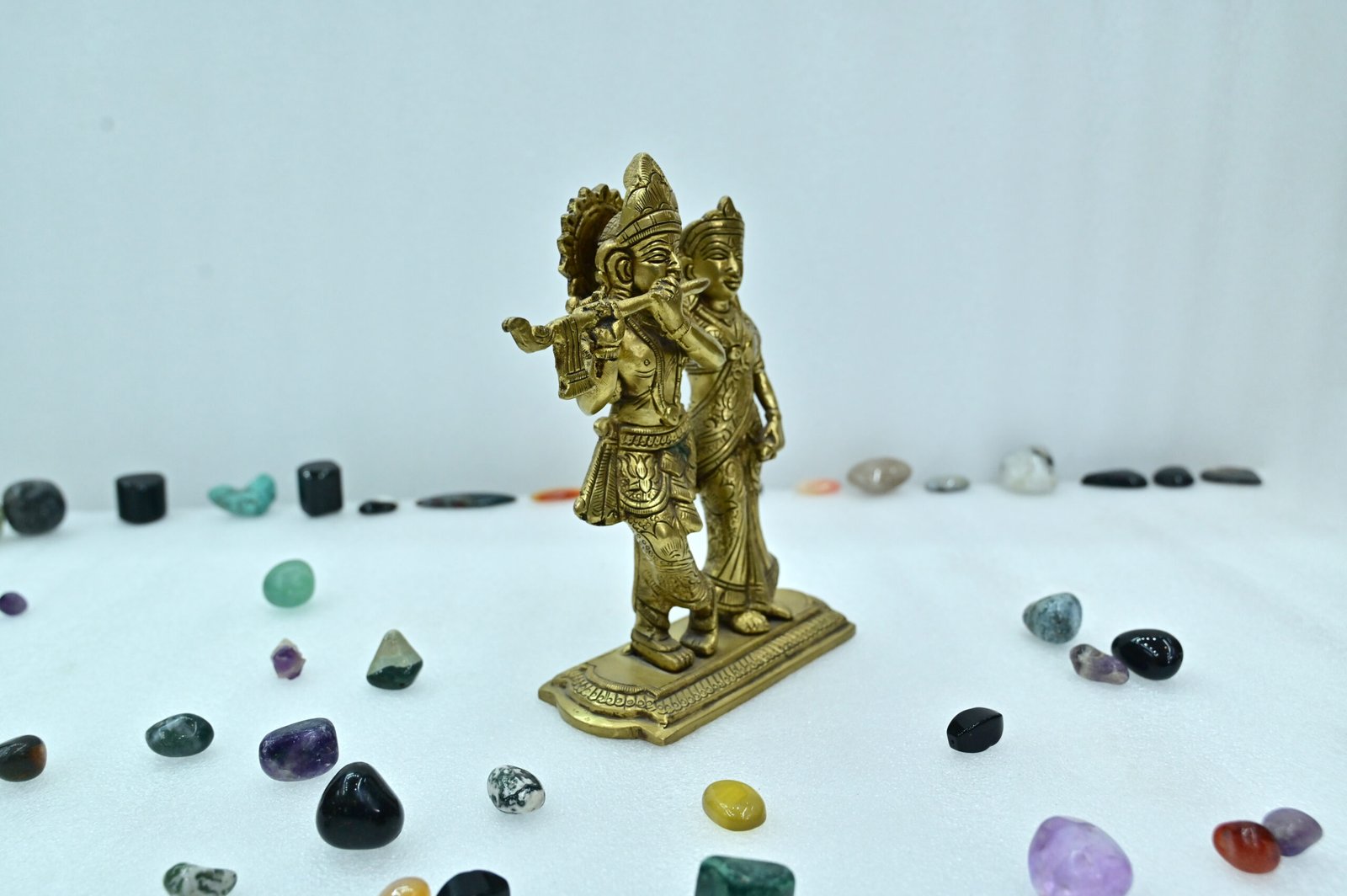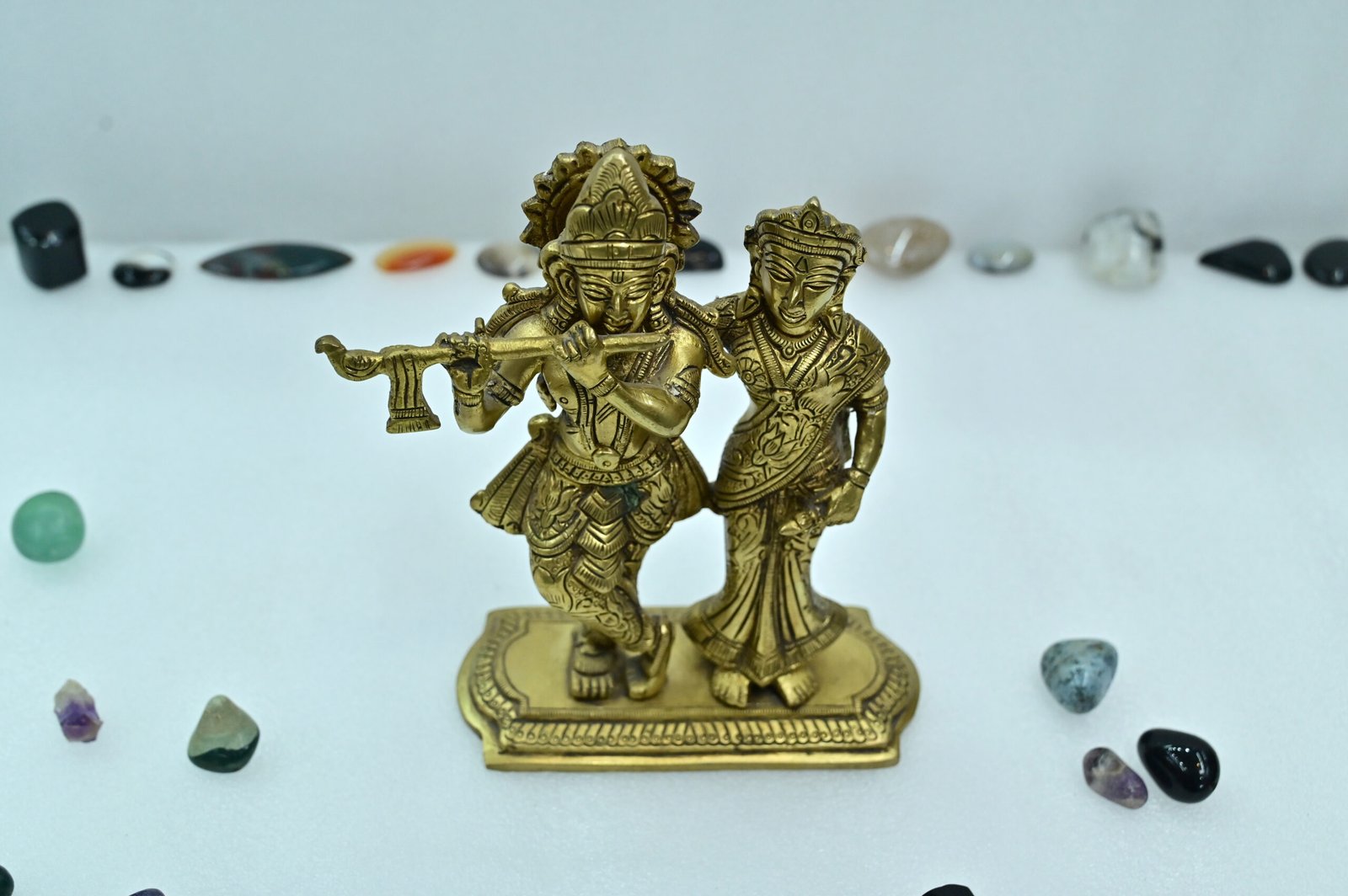 Bring home the premium brass Radha Krishna statue, intricately crafted to symbolize divine love and devotion. Perfectly designed for spiritual spaces and home décor, this idol radiates beauty and tranquility.