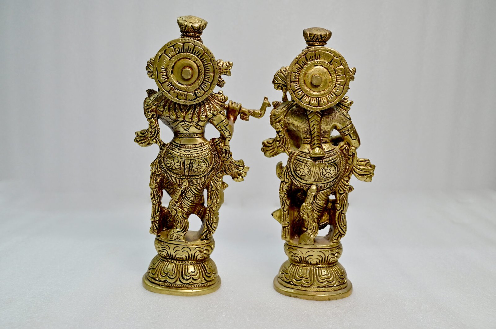 Meticulously crafted with elegant detailing, this Radha Krishna Statue captures the divine in every aspect. Its intricate finishing adds a touch of sophistication, making it a mesmerizing centerpiece for your home temple or devotional space.