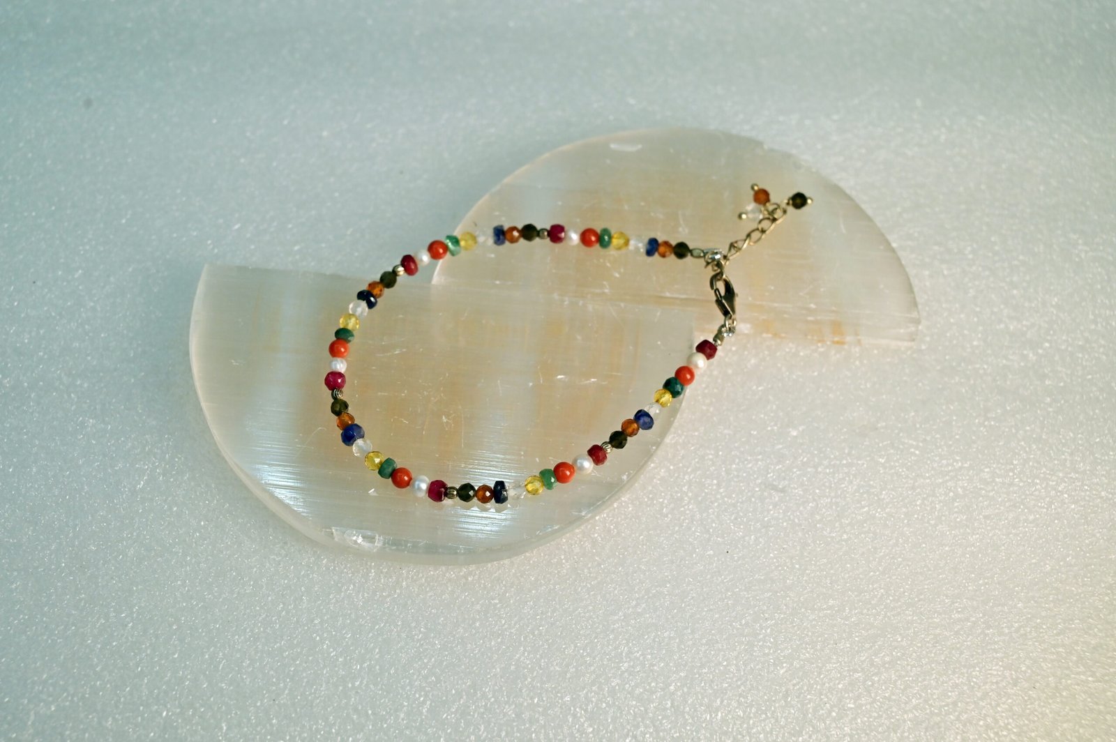 This Ruby & Pearl Bracelet blends passion with calmness, offering a perfect balance of energy and peace. Ruby symbolizes love, vitality, and leadership, while Pearl promotes emotional healing and serenity. Ideal for those seeking confidence with inner peace, this natural gemstone bracelet supports emotional balance, relationship harmony, and personal growth. Perfect for both casual and spiritual wear.