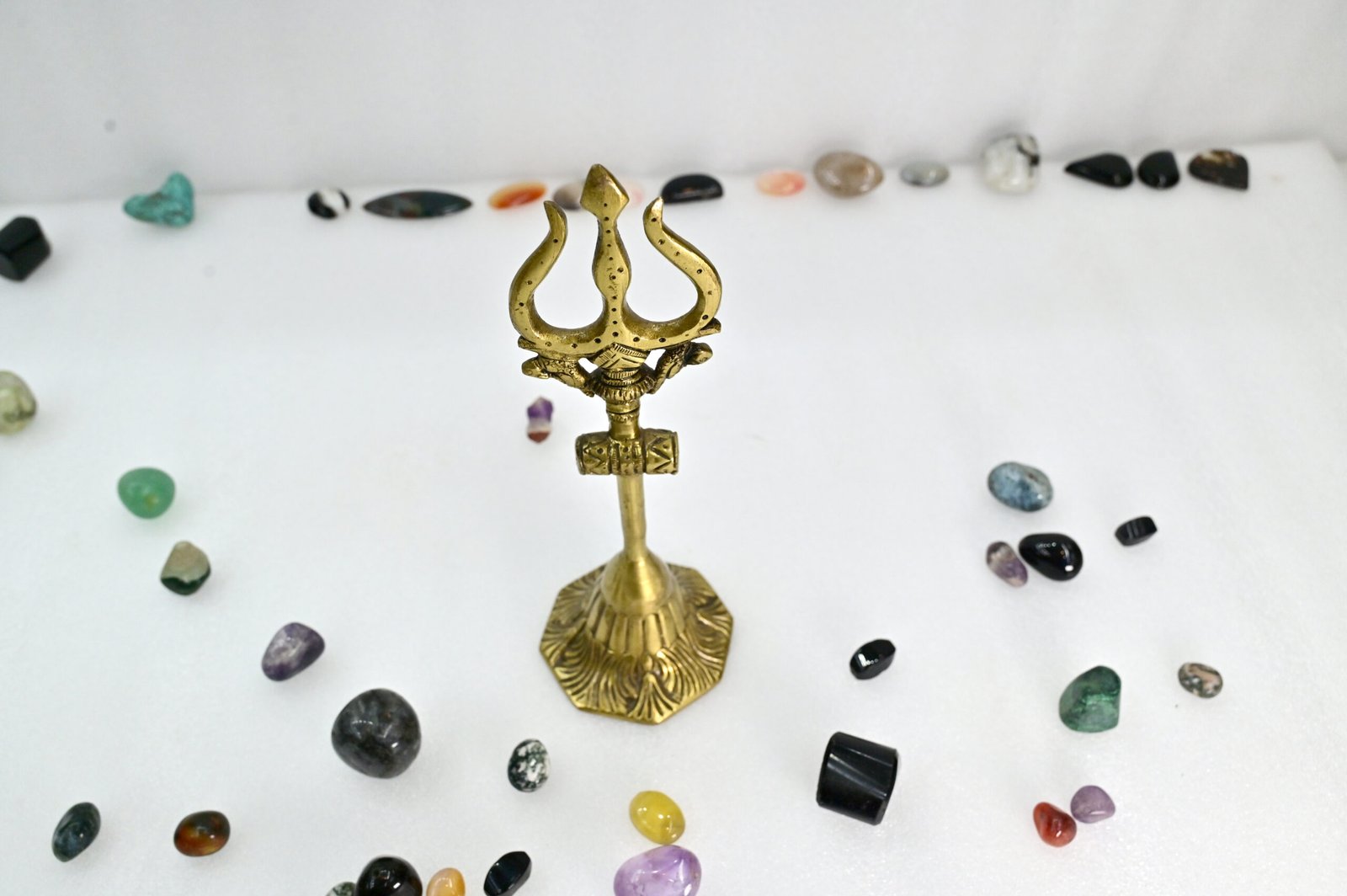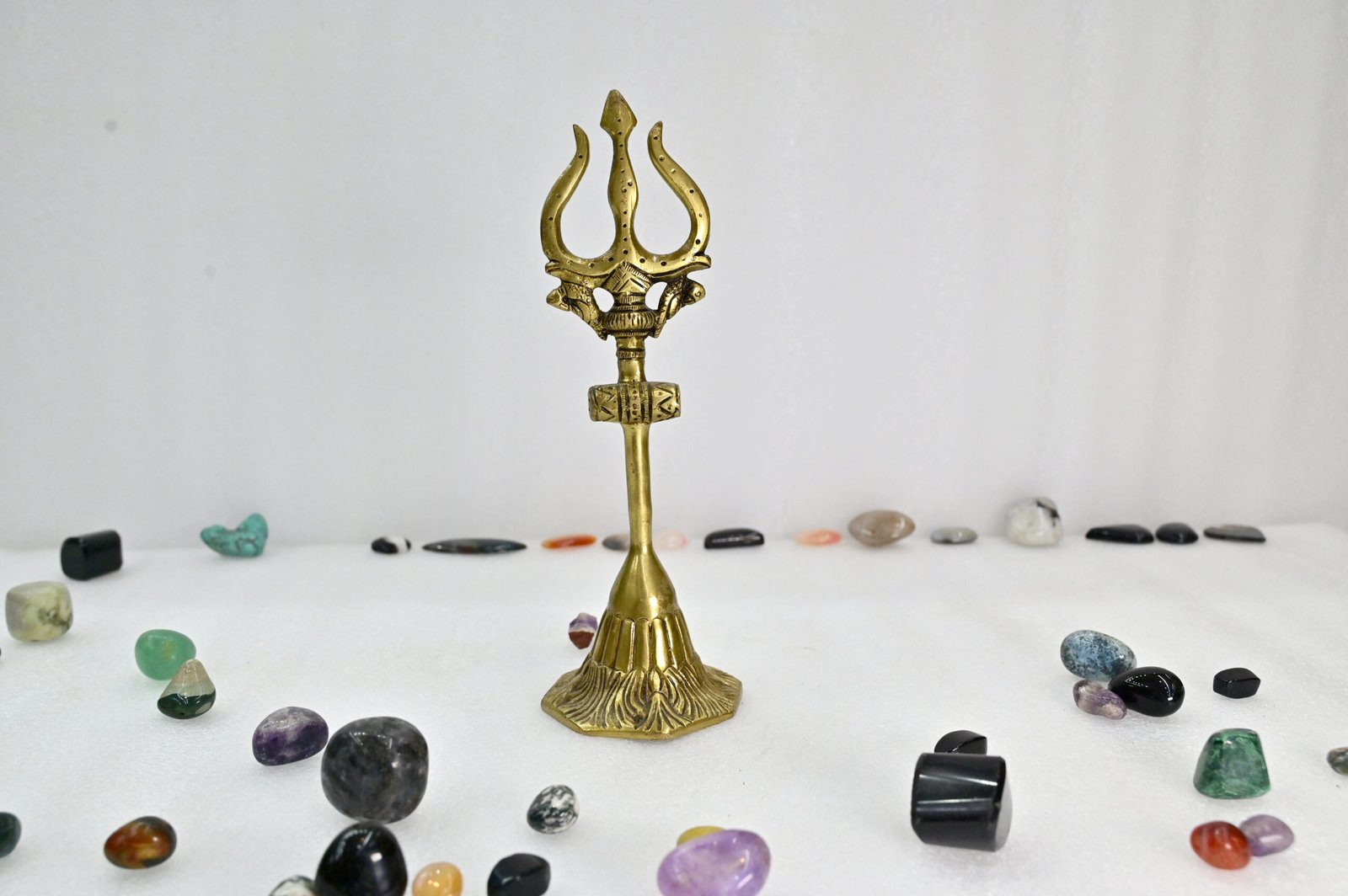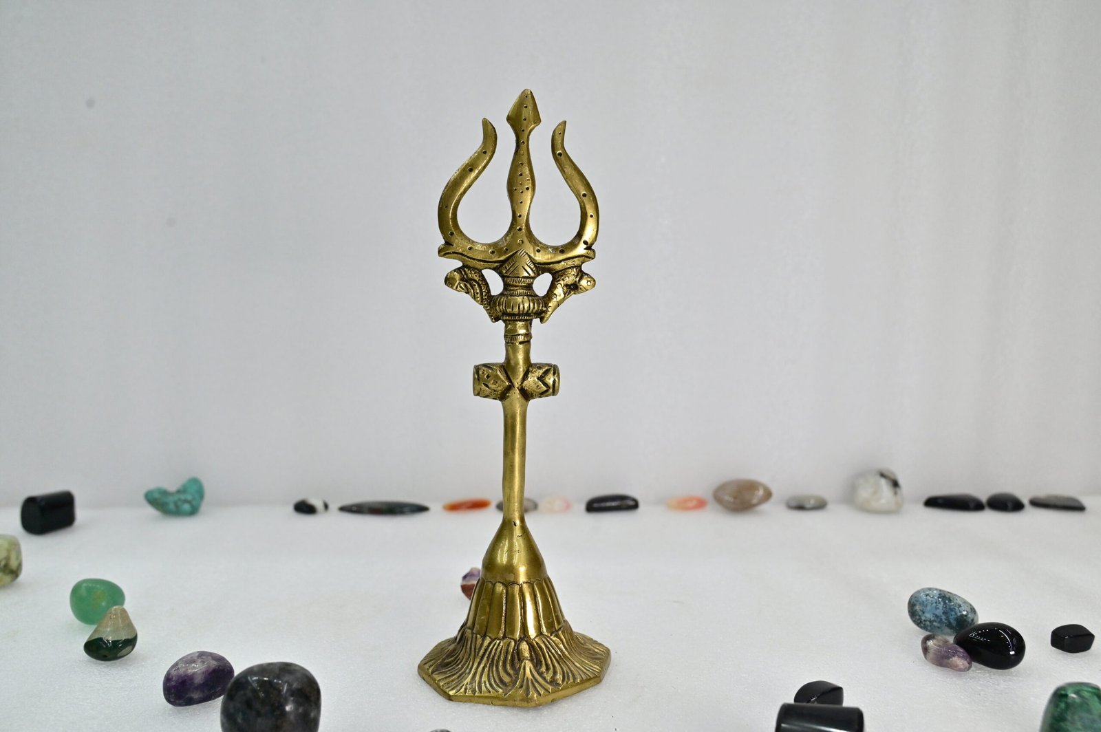 Made from high-quality materials, this Trishul Stand is not just a decorative piece but a durable companion for years to come. Its sturdy design ensures stability while radiating elegance and charm, seamlessly fitting into any spiritual ambiance.