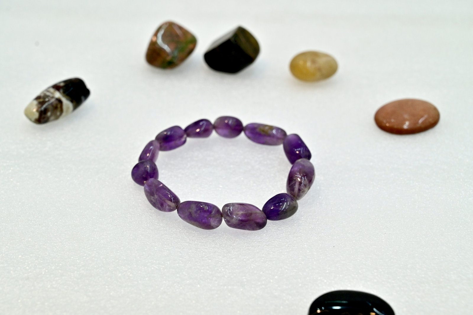 Natural Tumble Amethyst Bracelet known for calmness, stress relief, and positive energy.